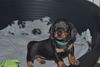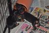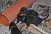 Emily zieht sich nun tagsüber zunehmend zurück, nachts aber schäft sie immer noch bei den Welpen mit im Körbchen.