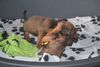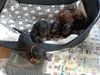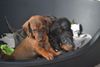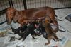 Die Welpen interessieren sich schon sehr für ihre Umgebung und fangen auch mit kleinen Kämpfchen, Geknurre und bellartigen Lauten an.