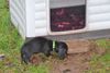 Es steht eine Hütte mit warmen Decken zur Verfügung so dass die Welpen jederzeit Unterschlupf finden können - was auch eifrig genutzt wurde.